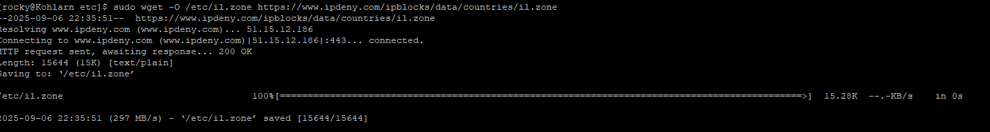 sudo wget -O /etc/il.zone https://www.ipdeny.com/ipblocks/data/countries/il.zone