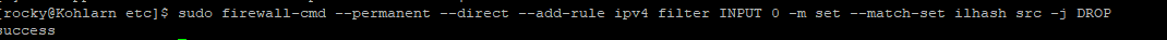 sudo iptables -I INPUT -m set --match-set ilhash src -j DROP